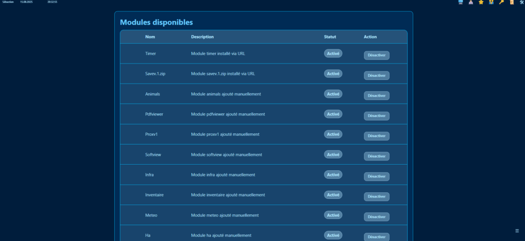 - Modularité : Tu installes uniquement ce que tu veux via un « Market » : calendrier, gestionnaire de fichiers (Folders), notes, météo, suivi de projets, etc.