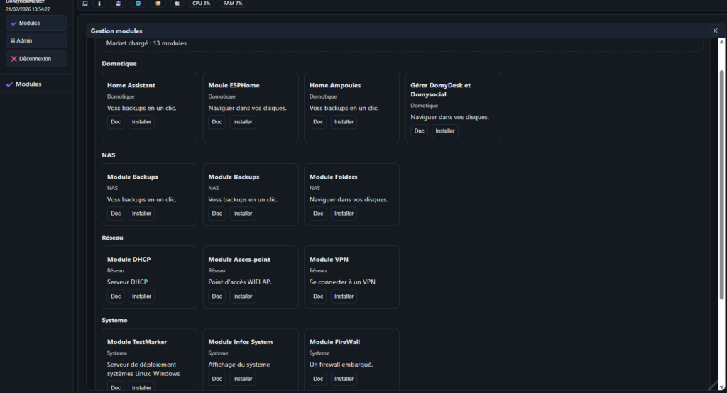 - Le rôle : Elle sert de « maison » à DoMyDesk et DoMySocial. Elle contient tout le nécessaire : serveur Web (Apache/PHP), pare-feu (Firewall), VPN intégré et parfois même un hotspot Wi-Fi.