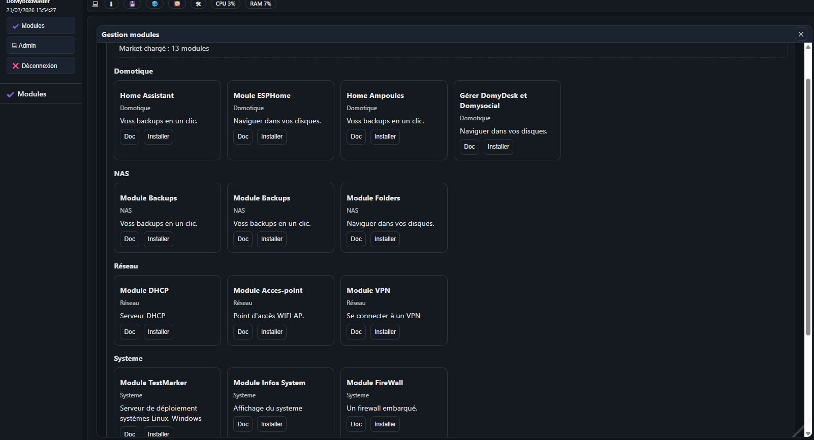 Vous trouverez sur ce lien la procédure écrite pour installer DoMyDesk sur votre NAS Synology.